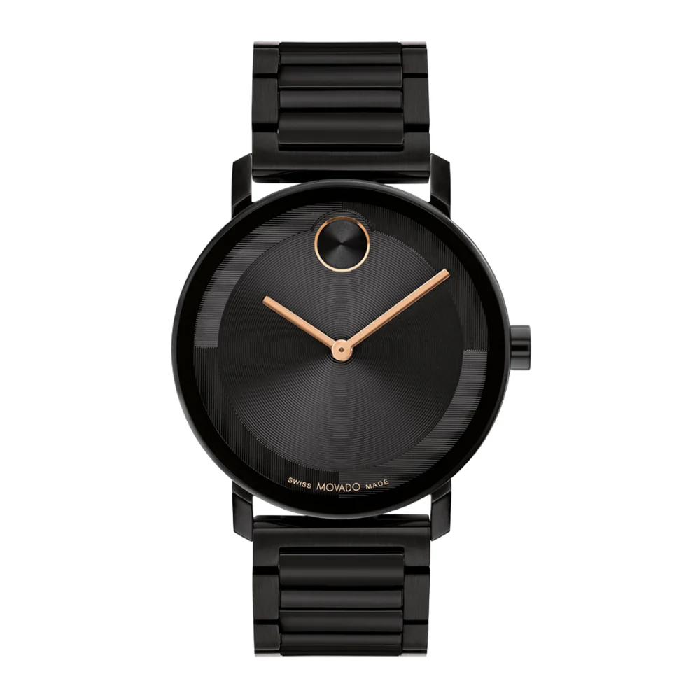 The evolution of modern design with a sharp look and elevated feel. Crafted from black ion-plated stainless steel, this sleek timepiece features a statement-making 40mm case that houses a captivating micro-textured tonal dial with a glossy lacquer overlay, slim hands, and our iconic dot motif at 12 o’clock. A flexible H-link bracelet in matching black completes the design.