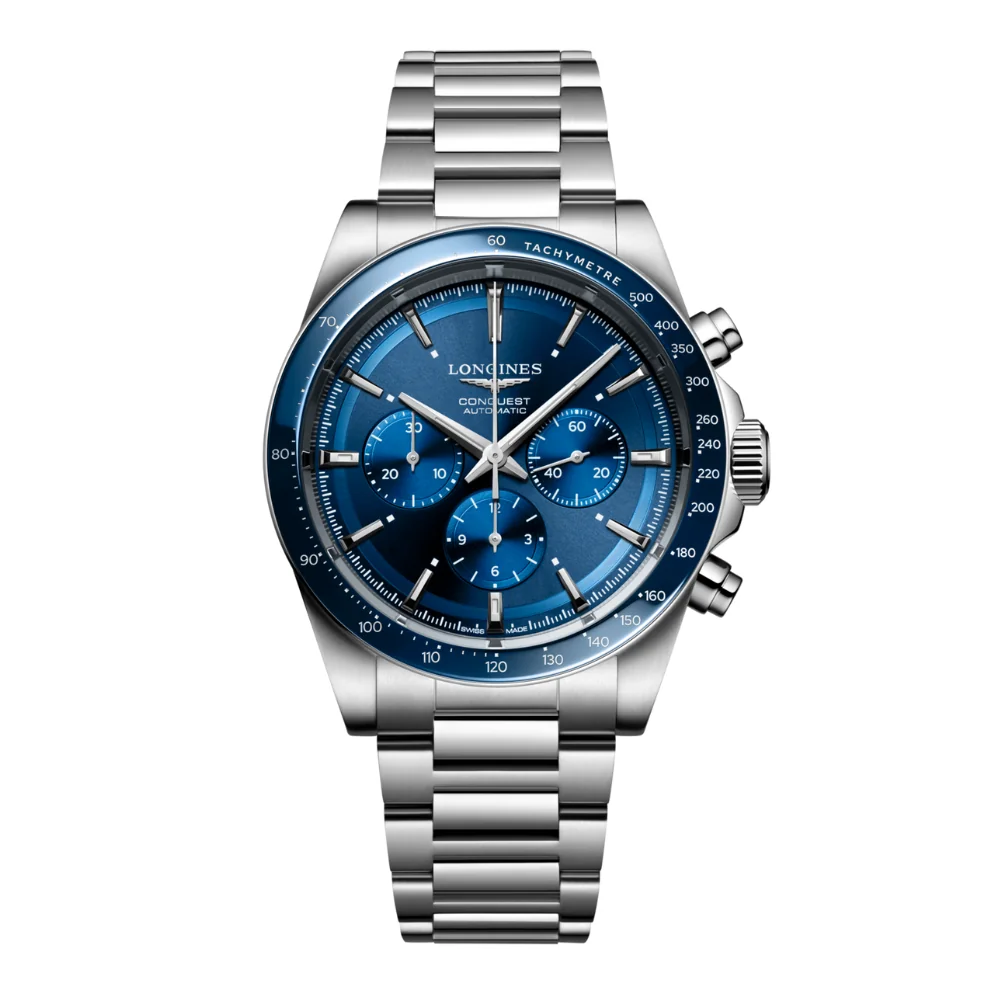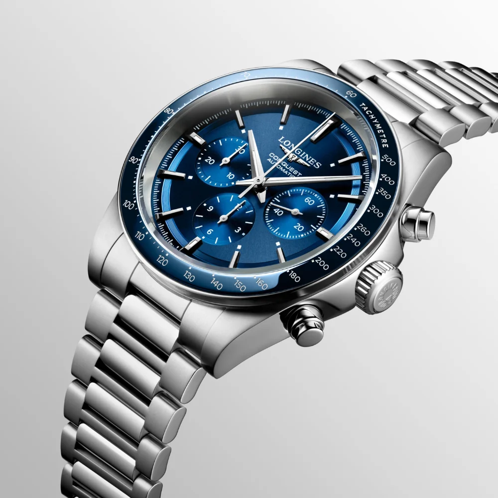 The ultimate every day watch, the Conquest was also the first LONGINES collection to have its name protected by the Swiss Federal Intellectual Property Office in 1954. The collection has since evolved through design and technology but has remained true to its original identity, exuding a harmonious blend of audacity, contemporary design and sporty elegance. Each Conquest Chronograph watch showcases LONGINES’ unwavering commitment to performance and horological excellence. These chronographs are powered by an exclusive LONGINES calibre equipped with a silicon balance-spring.