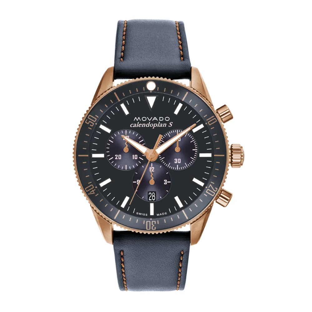 Iconic mid-century design gets a fresh feel. First introduced in 1950, this contemporary-cool design is inspired by our archives with a modern sporty feel. This timepiece features a 42mm bronze-hued ion-plated stainless steel case with fluidly extended lugs and a charcoal grey aluminum bezel.