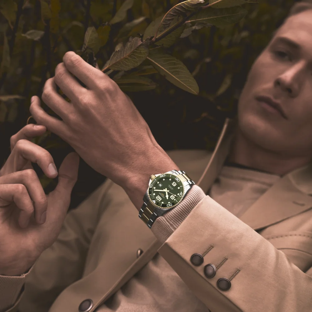 Inspired by the world of water sports, the HydroConquest collection stands out with its daring design. Water-resistant up to 30 bar (300 m) with a unidirectional rotating bezel and screw-down crown and case back, it guarantees exceptional reliability at all times.