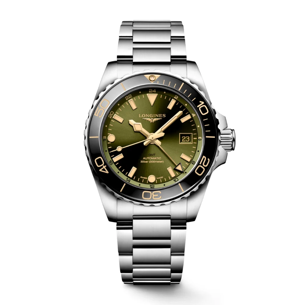 A true classic among sports watches, the HydroConquest line has been expanded with models featuring a GMT function. Combining technical excellence and elegance, the HydroConquest GMT has taken inspiration from the world of water sports, while drawing on LONGINES’ historic expertise in developing watches with multiple time zones. Water-resistant up to 30 bar (300 m), this GMT watch is powered by an exclusive LONGINES calibre equipped with a silicon balance-spring and resistant to magnetic fields.